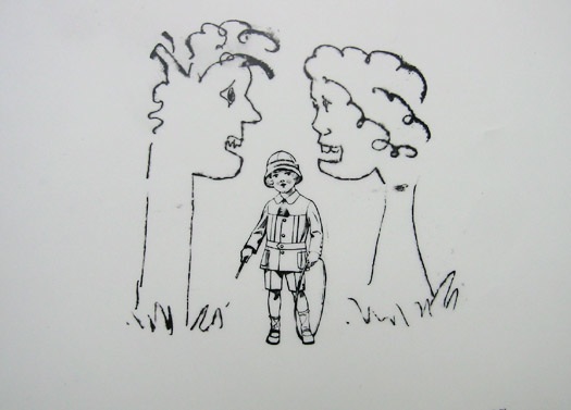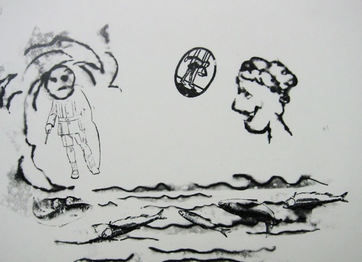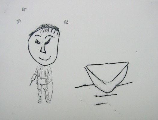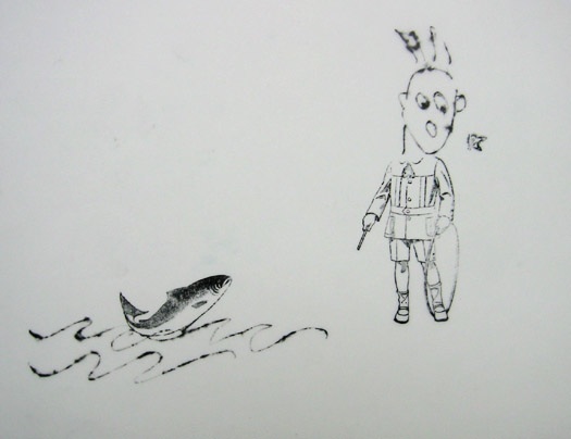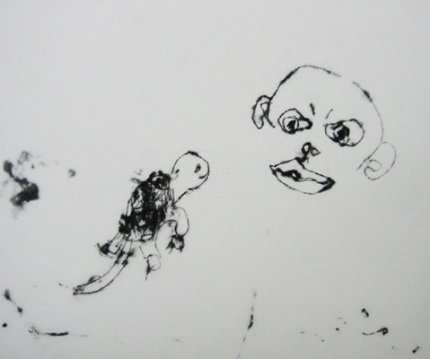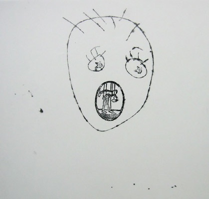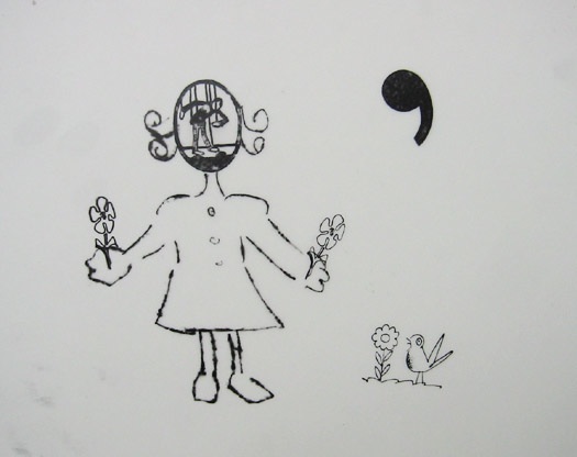 The artist is in a continual process of rediscovering her own unique language/mark. For 14 years Denise Carson Wilde practiced the craft of letterpress printing and graphic design . The letterpress process can be very technical, but essentially it employs one of the most primary printmaking techniques, stamping. Wilde worked with a random choice of letterpress "stamps" and drew instinctual and automatic images in relation to these stamps, building a deep, poignant and sometimes disturbing story. Throughout the drawings, thought bubbles and other indicators tell of convoluted communications. Replete with all of the humour, drama, and menace of storytelling images associated with childhood, Wilde explores the complexity of inter-relationships and our contemporary world.