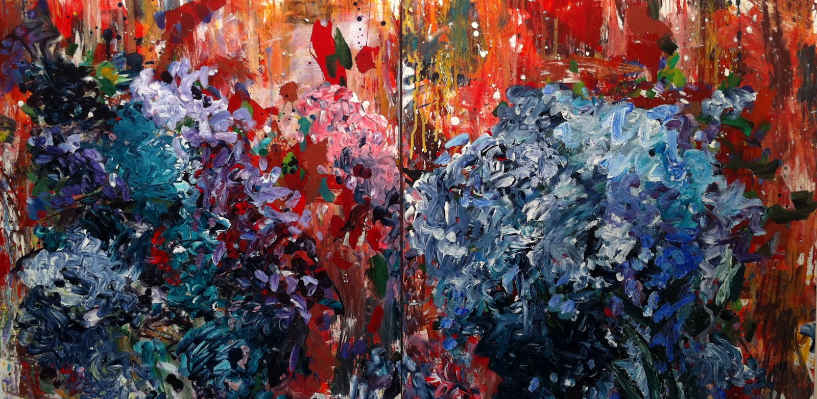 The Enthusiasm of the Hydrangea 2012 acrylic on canvas Dyptych 24x48in 61x122cm