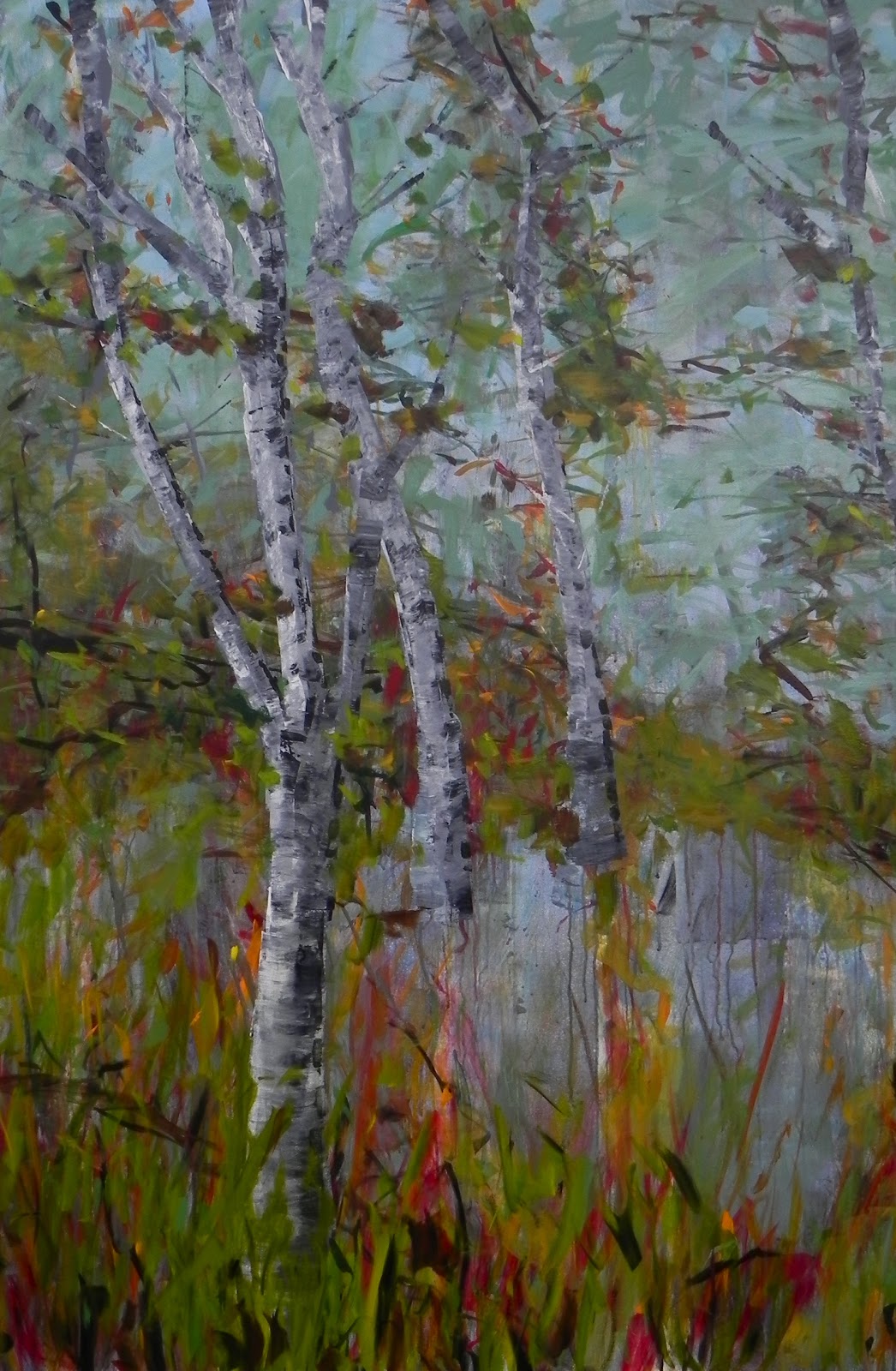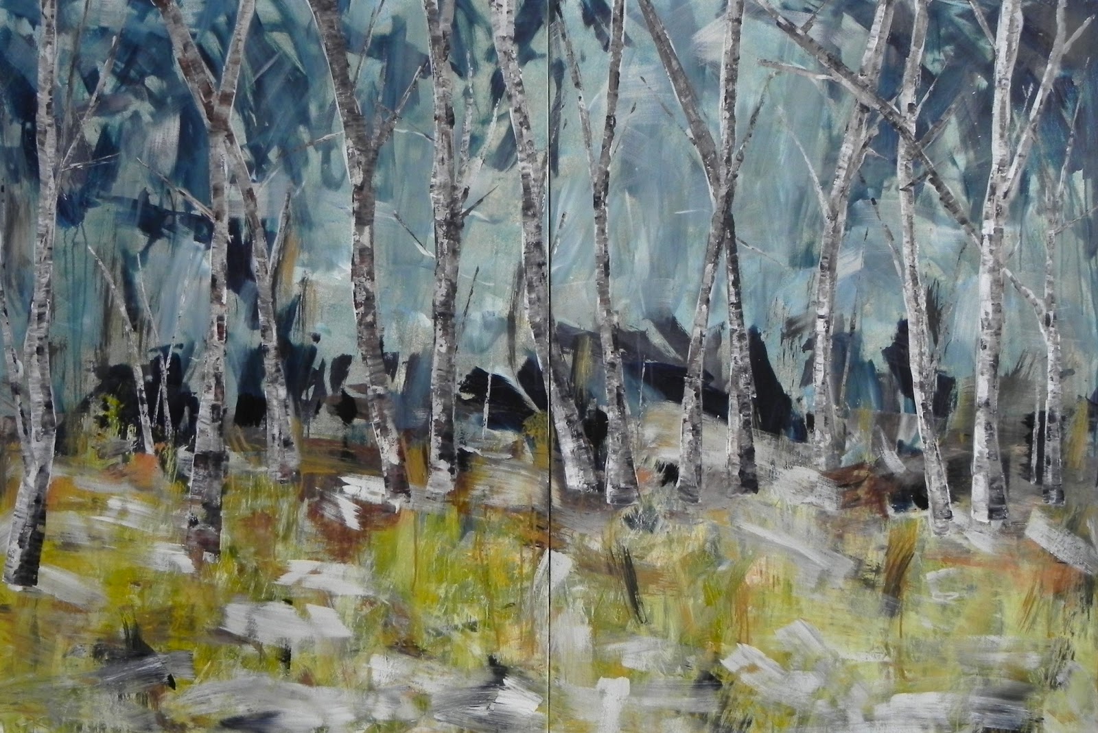 Green Lake Birch 2012 acrylic on canvas 48x72in 122x182cm diptych