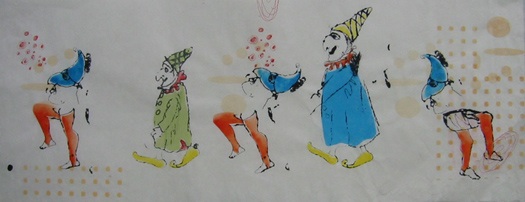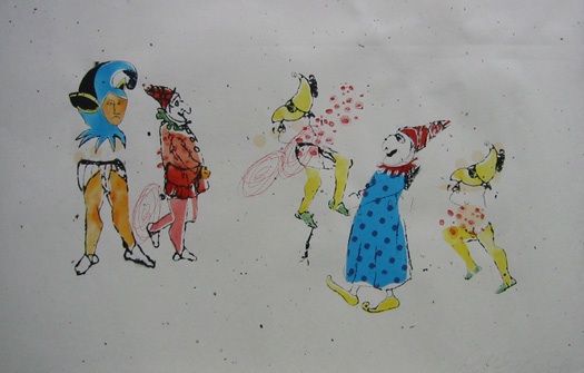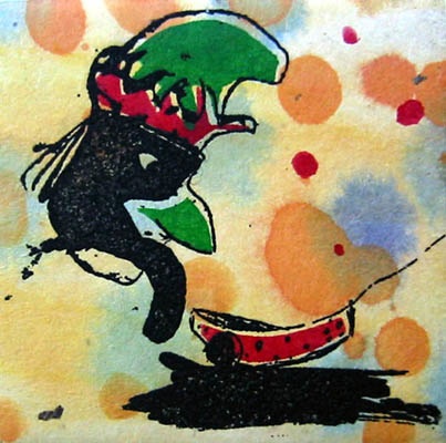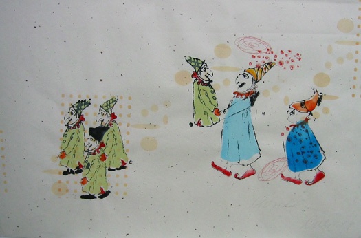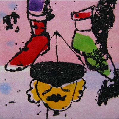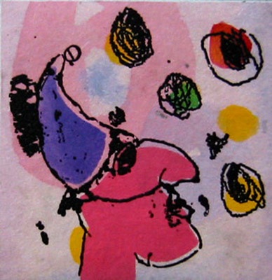 juggler 2000 edition of 6 etching/stencil/chine colle paper 12x12 in. | image 3.5x3.5 in