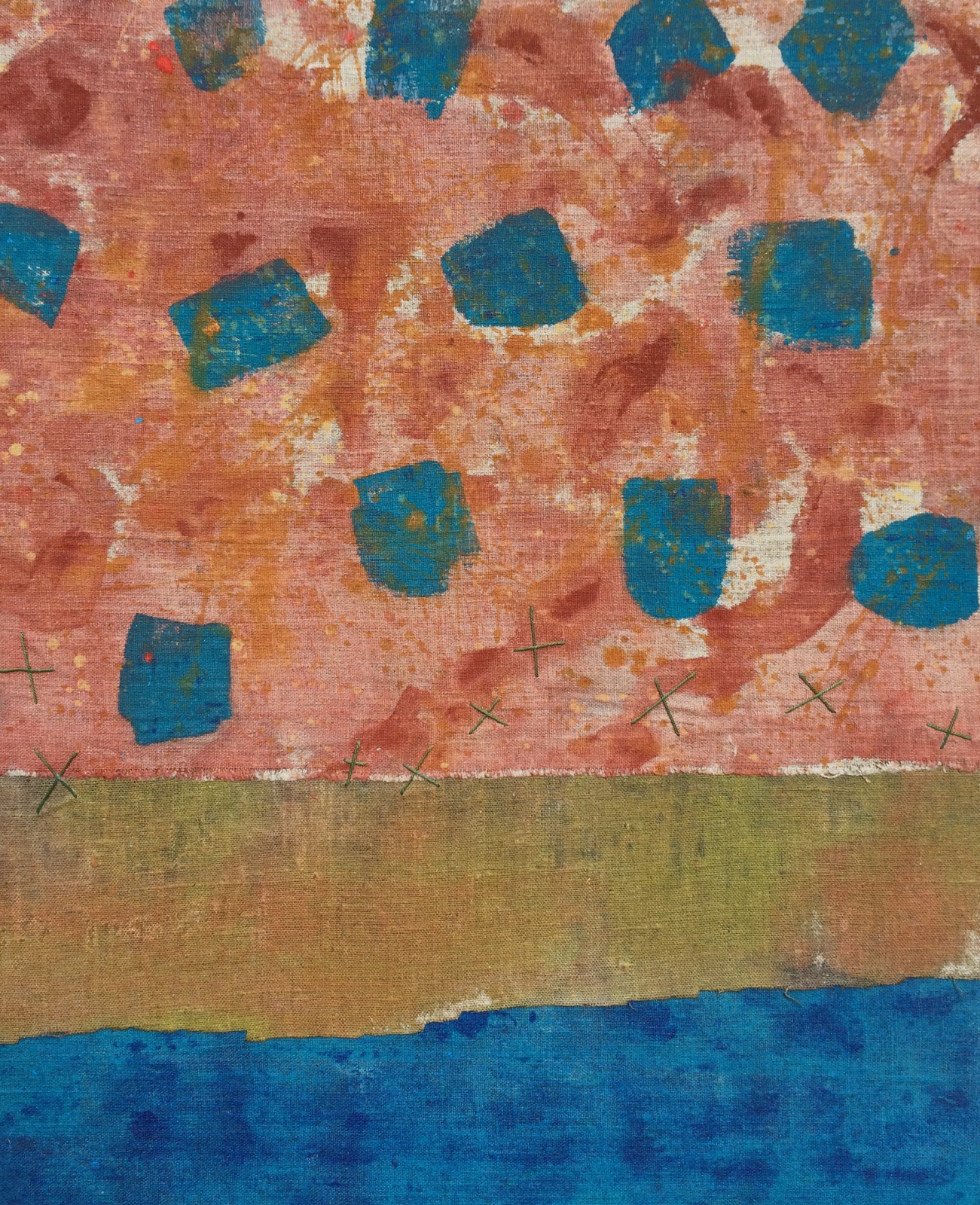 untitled collage 2014 acrylic on linen with stitching mounted on wood panel 24x16in 61x40cm